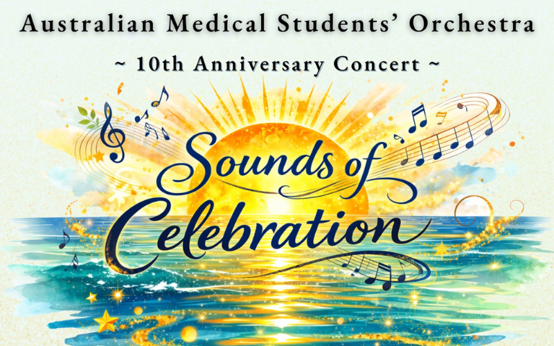 The Australian Medical Students’ Orchestra (AMSO) presents ‘Sounds of Celebration’, a vibrant program celebrating 10 years since the orchestra’s inauguration. This year, the concert will fundraise for the charities ‘Hummingbird House’ and ‘Hear and Say’.